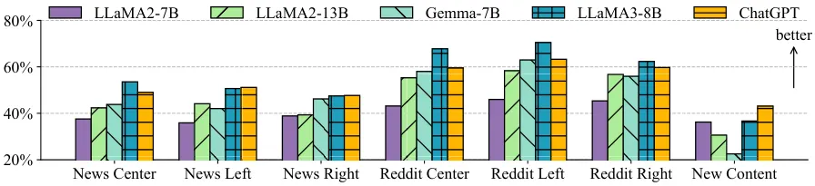 - 특히 성능이 좋은 LLM들(LLAMA3-8B, ChatGPT)은 커뮤니티 LM 코멘트 반영률도 높고 LLM 자체 콘텐츠 생성 비율도 높음