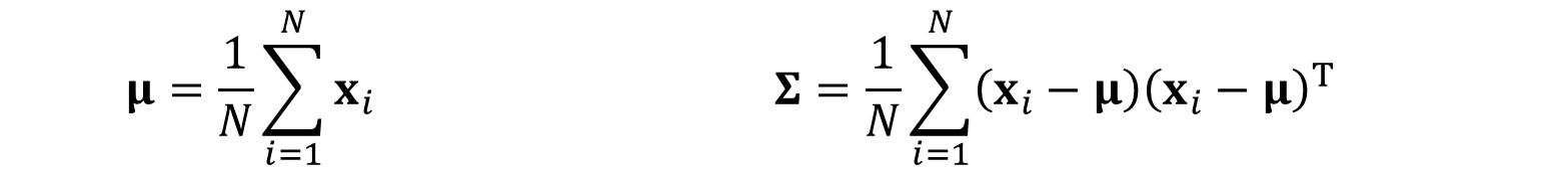 전체의 데이터를 단 하나 의 가우시안 분포로부터 생성되었다 가정. 해당하는 가우시안 분포의 평균 벡터와 공분산 행렬을 추정 → 학습 과정