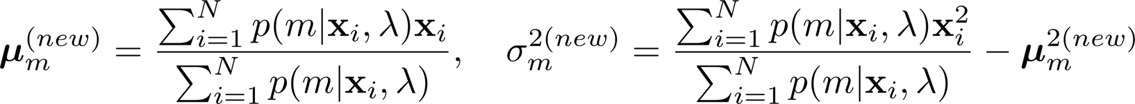 - w_m, mu_m, Sigma_m: 임의의 값으로 고정. 최적화 x.