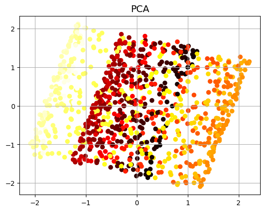 plt.scatter(pca_swiss[:, 0], pca_swiss[:, 1], c=t, cmap=plt.cm.hot)