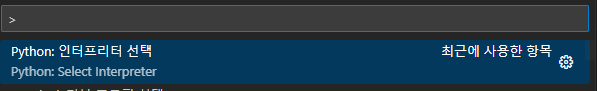 이전 포스팅에서 했던 것처럼 인터프리터를 연결해준다. ctrl + shift+ p를 누르면 다음과 같은 창이 뜬다